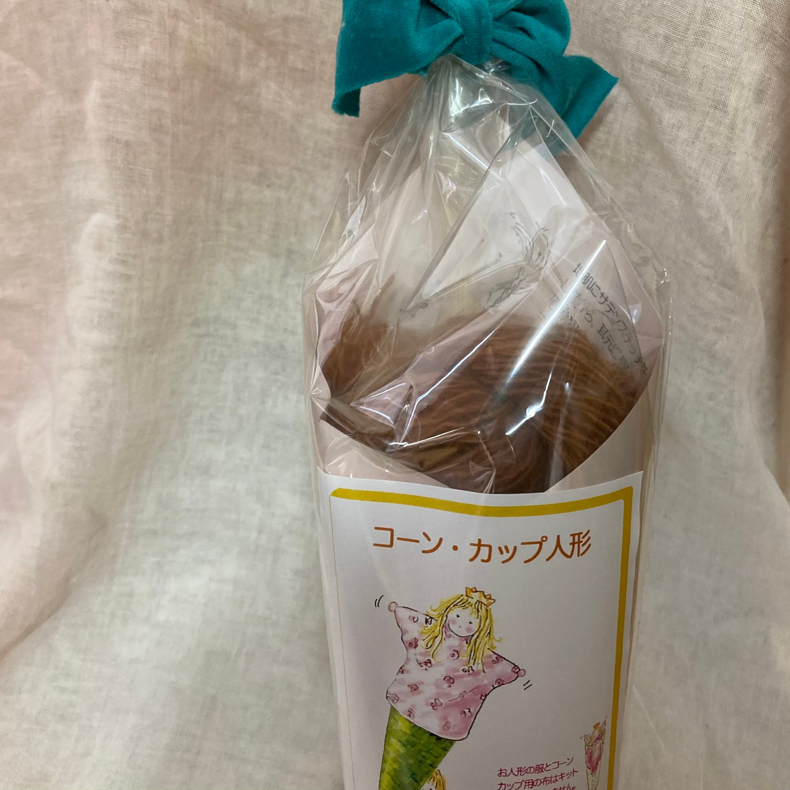 キットの中には、作り方、お人形の材料、コーンカップと