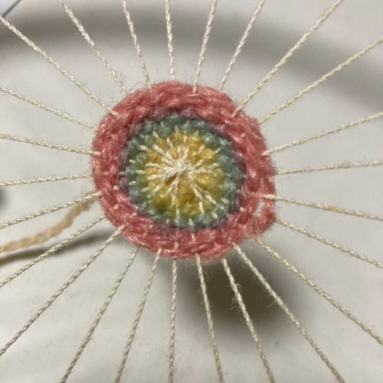 25個の穴に順にナンバーをつけて、対角線になるよう糸を通して縦糸にします。