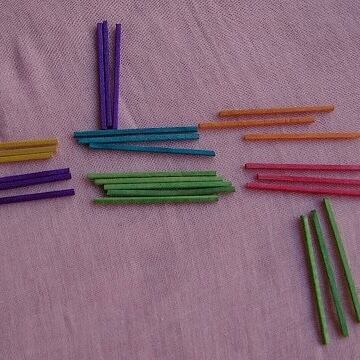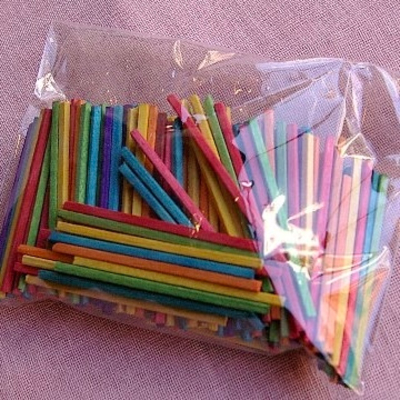 カラフルな木製カラースティック。5cmのスティック 6色が全部で約200本紙や板に貼ってモザイク画にしても楽しいですし、立体を組み合わせてボンドで貼っても色がきれいで仕上がりがきれいです。