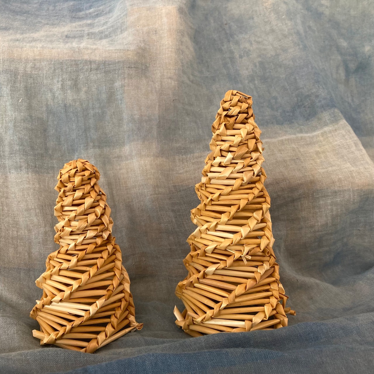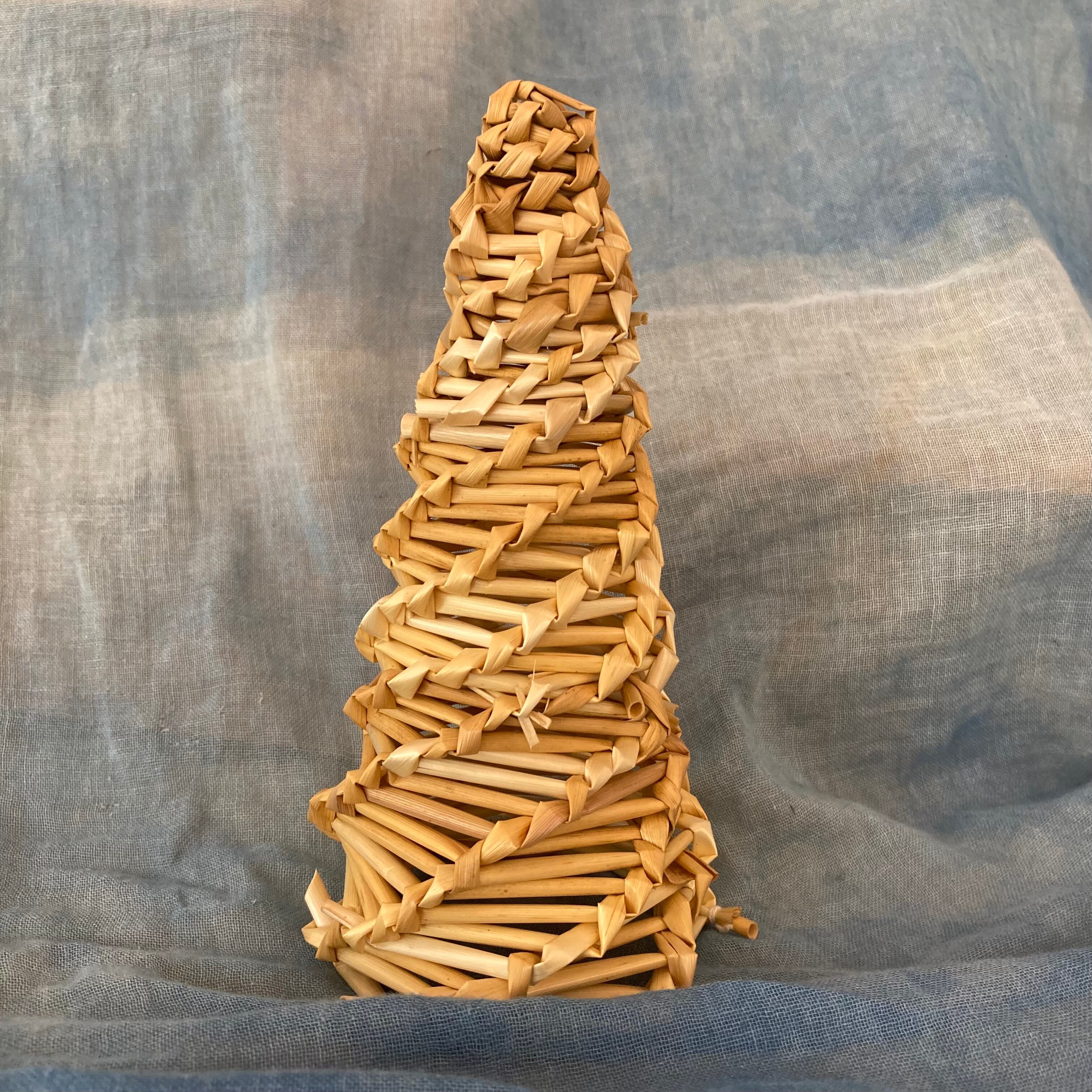 麦わらを組んで、一つ一つ手作りの立体のツリー。