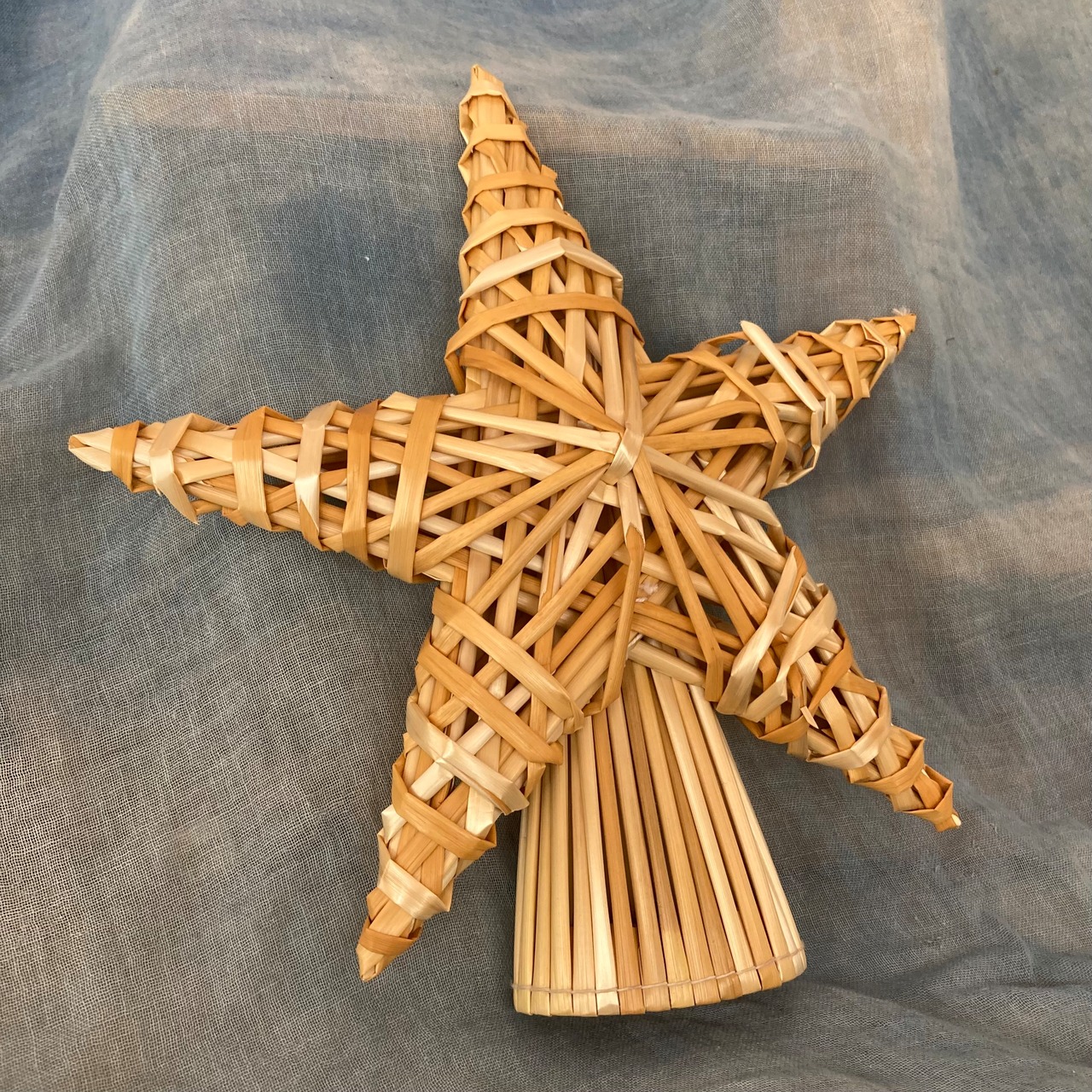 麦わらを組んで、一つ一つ手作りの立体のツリートップ。