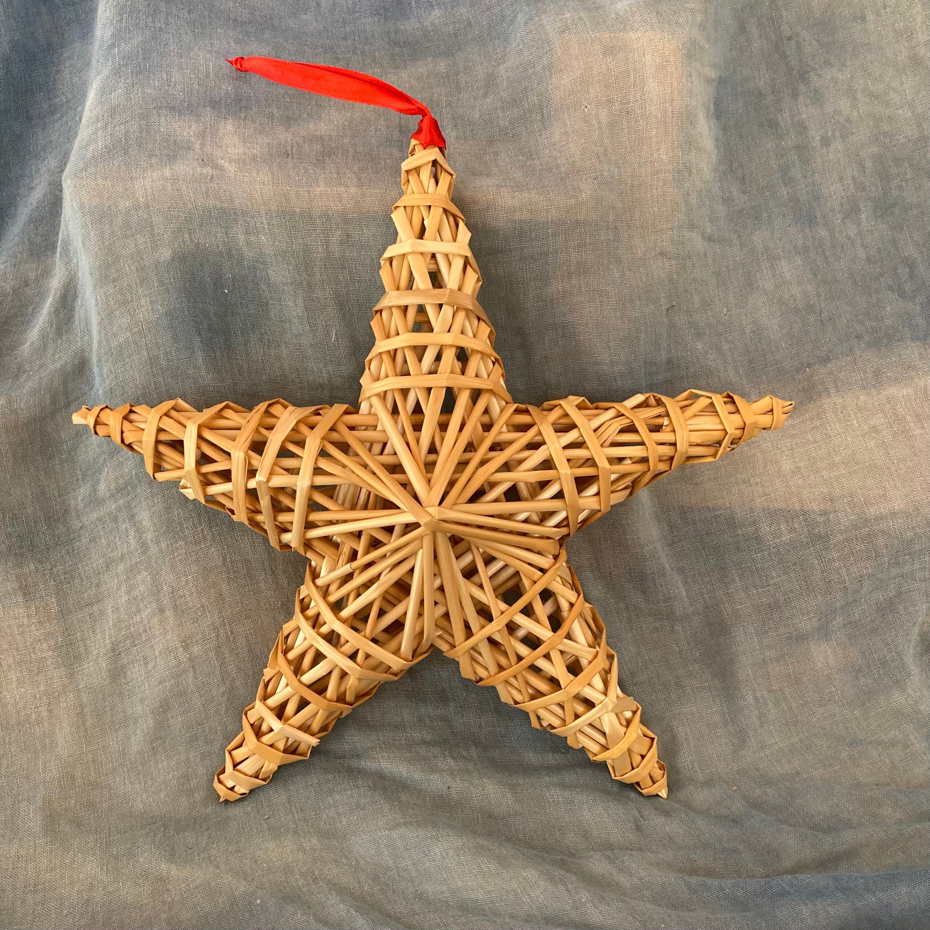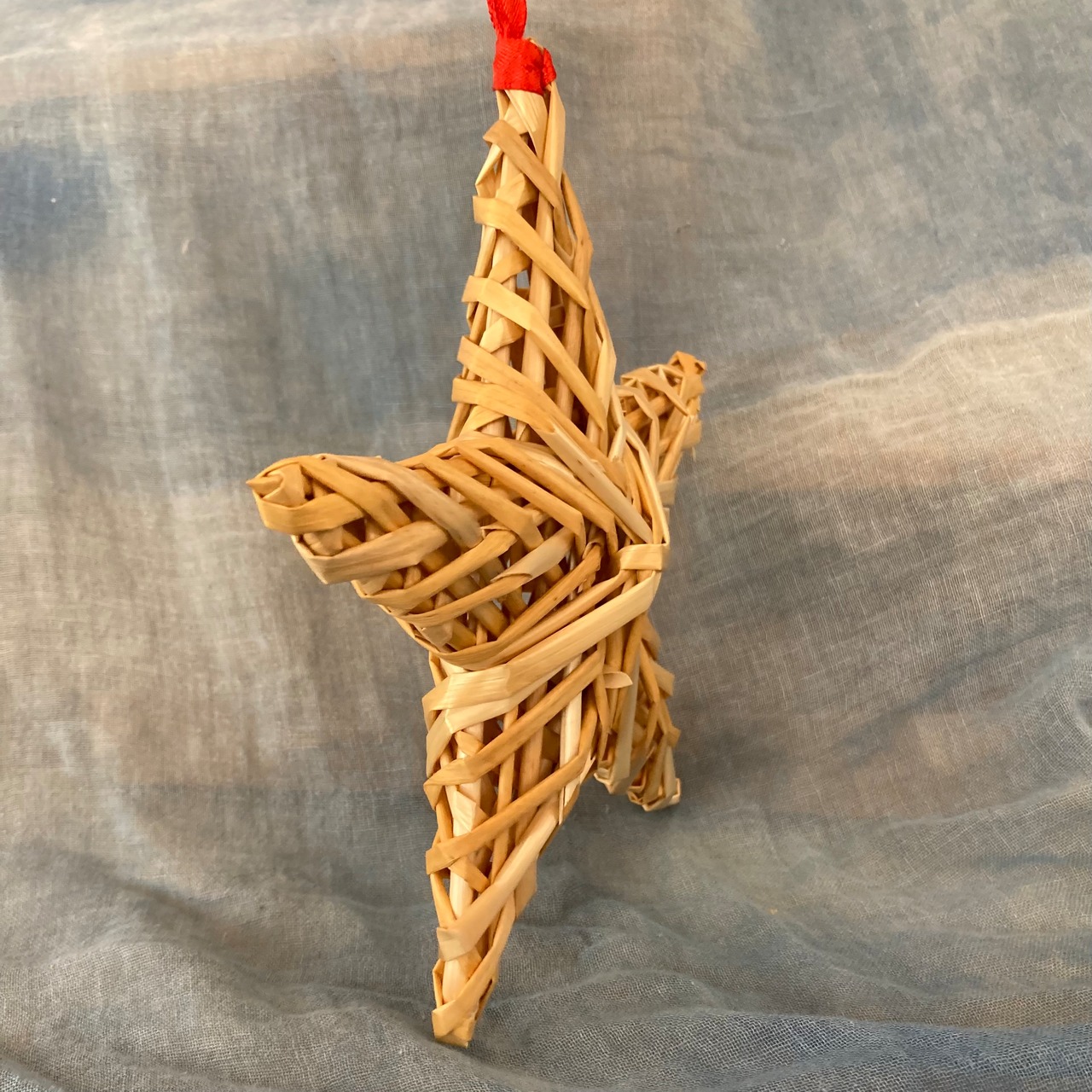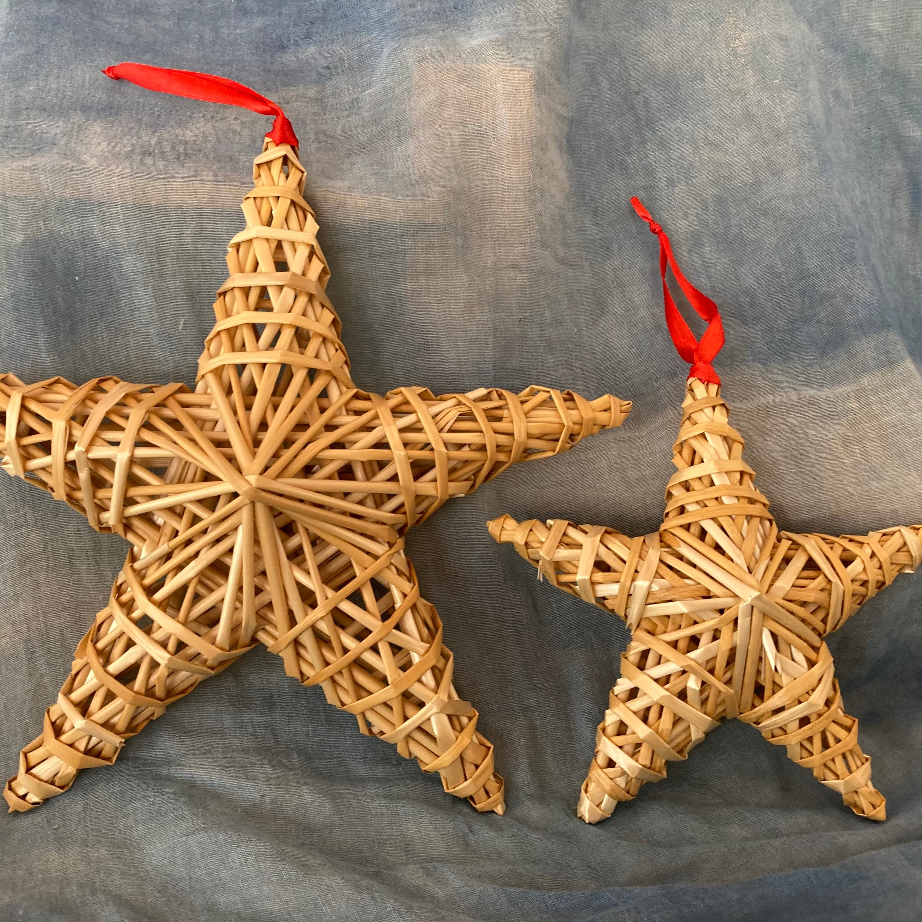 麦わらを組んで、一つ一つ手作りの立体の星。