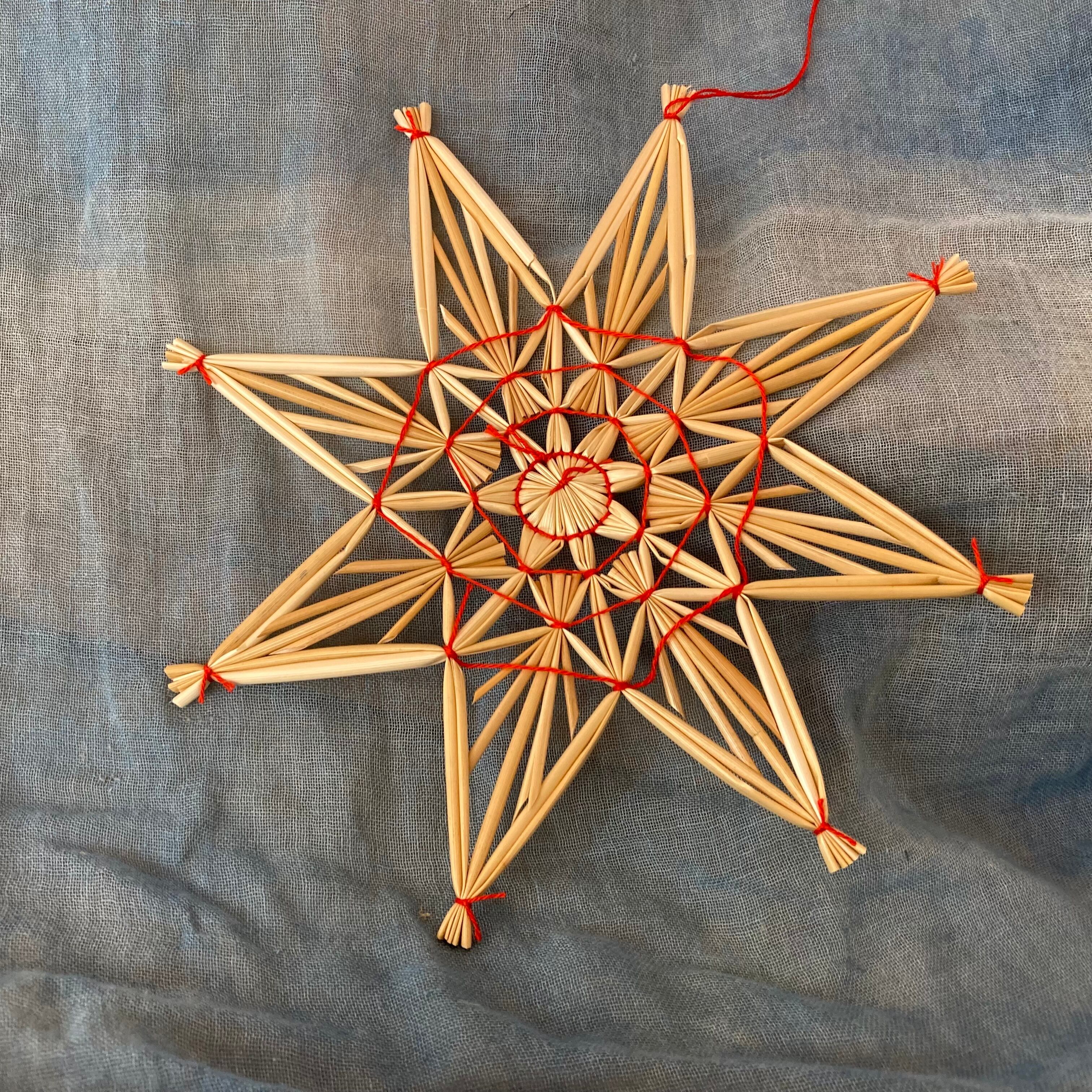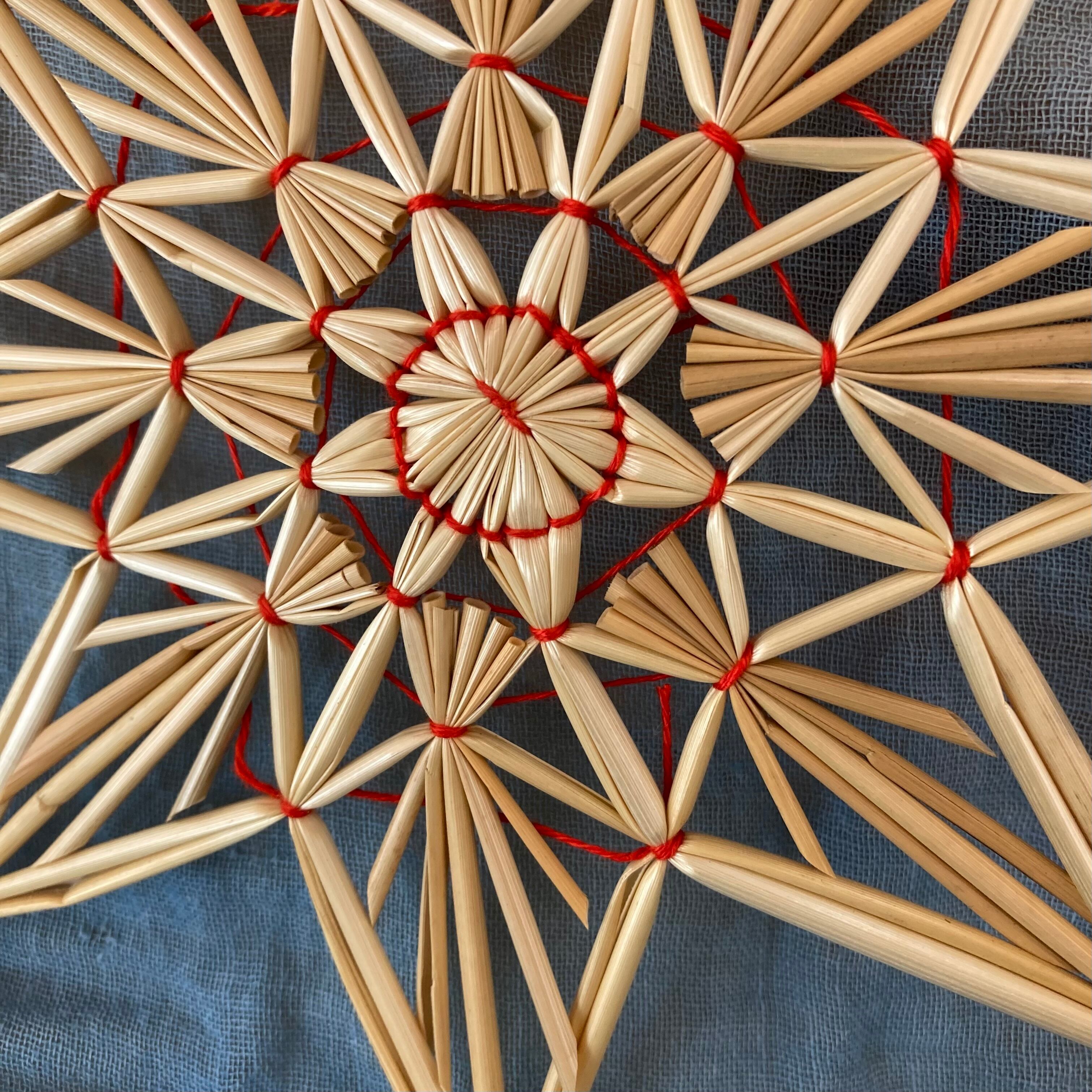 麦わらを組んで、一つ一つ手作りの星のオーナメント。