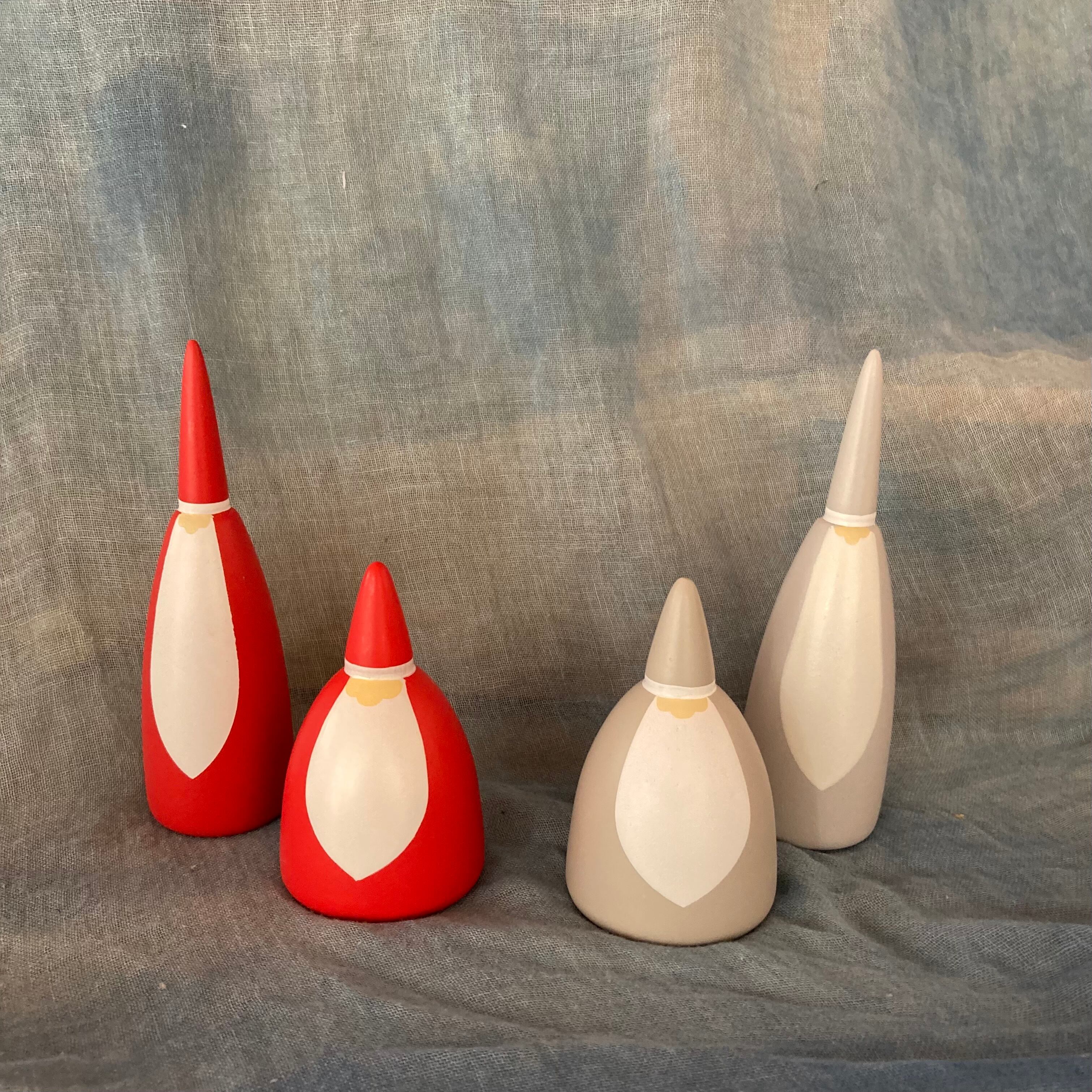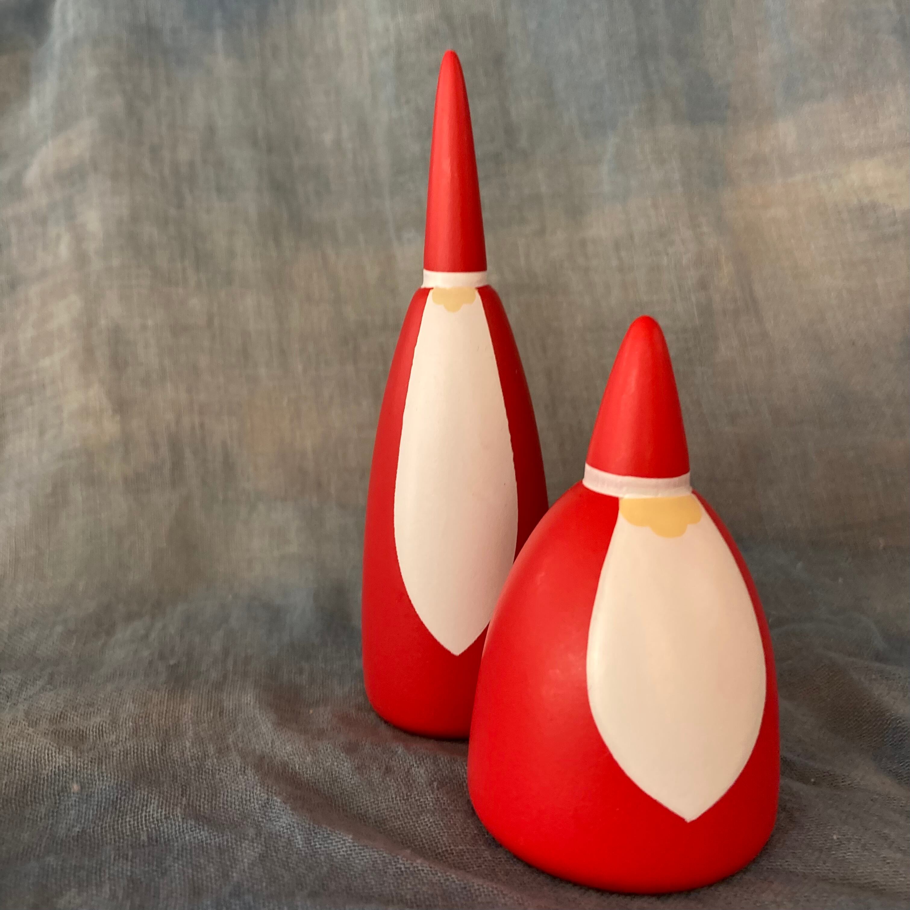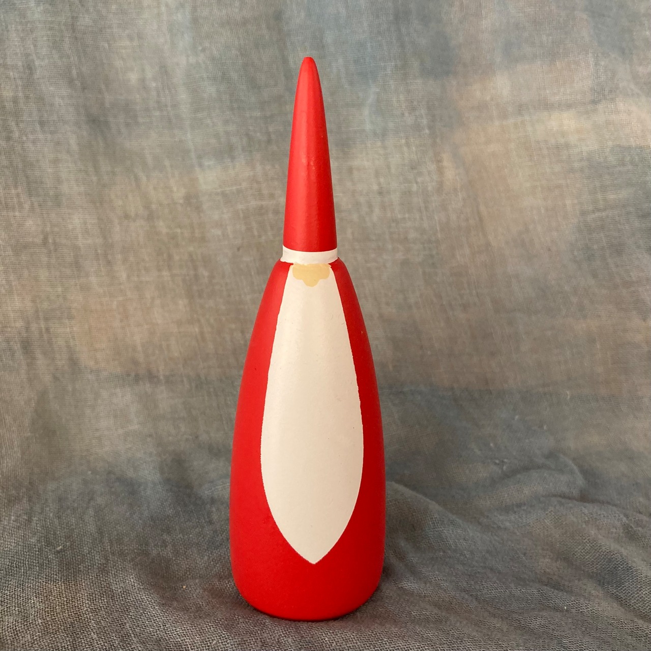 この木製のオブジェ。同じフォルムでも色が違うと雰囲気が変わります。この赤いタイプはサンタクロースというより聖ニコラウスの風情があります。