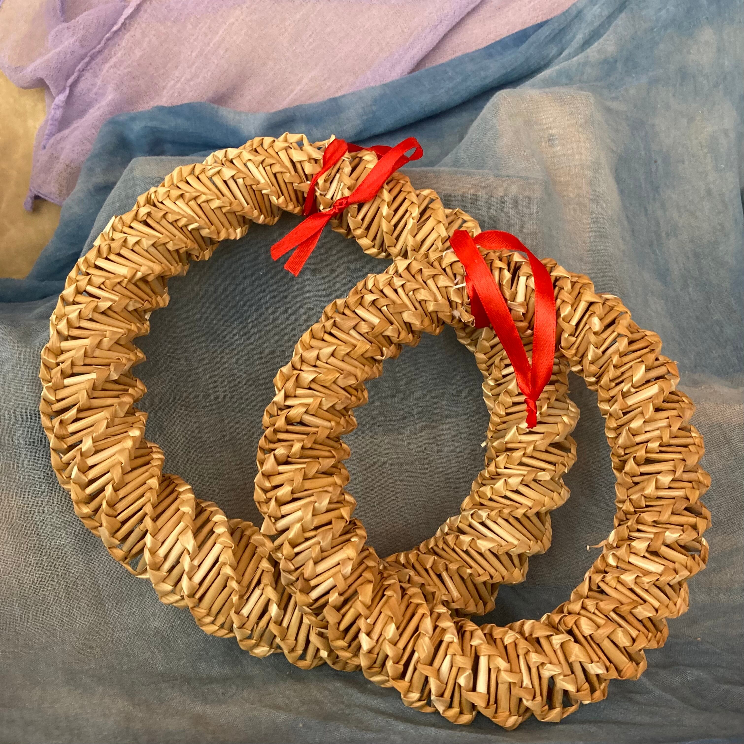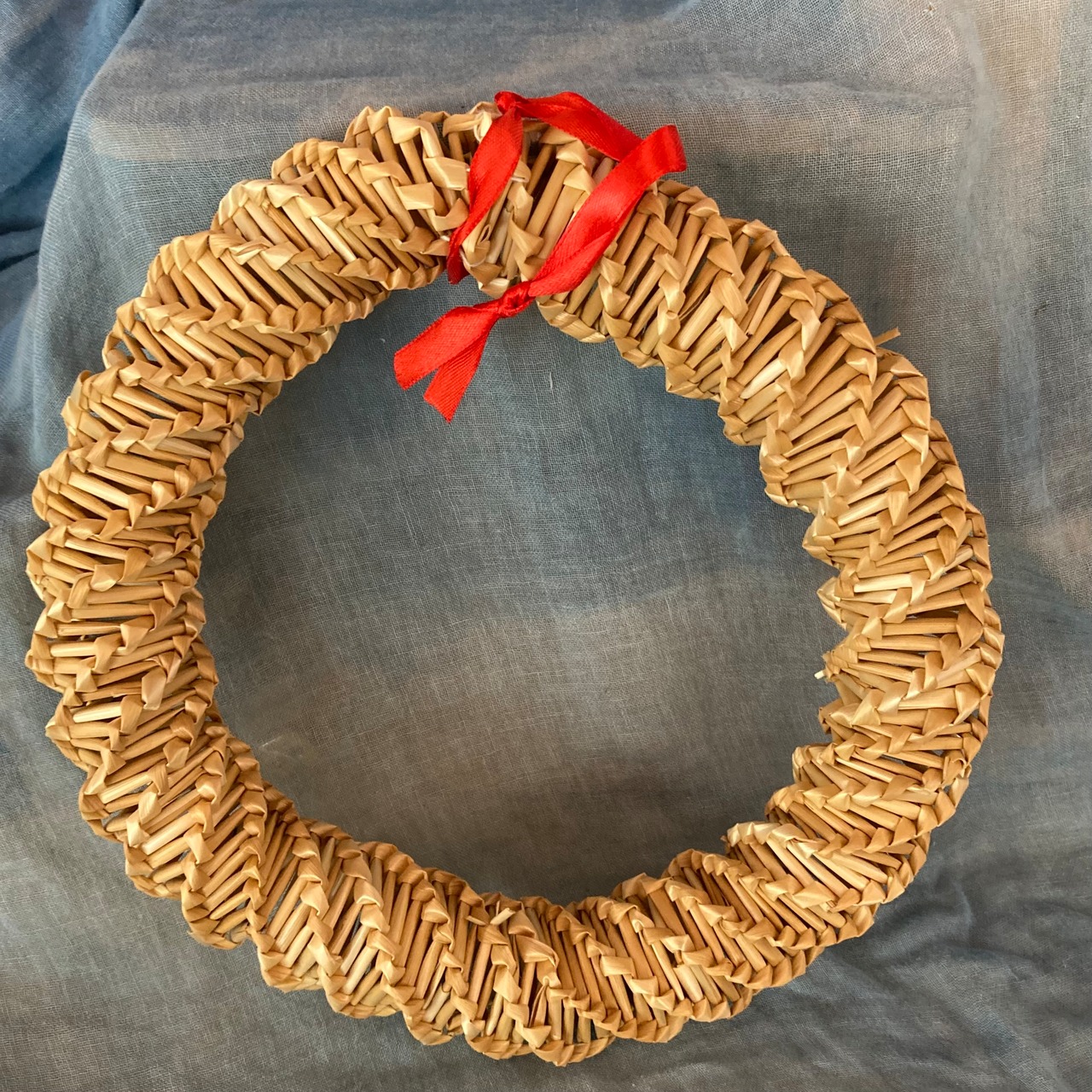 クリスマスリースの素材として、柊のひと枝や赤い実をつけるだけで変化します。