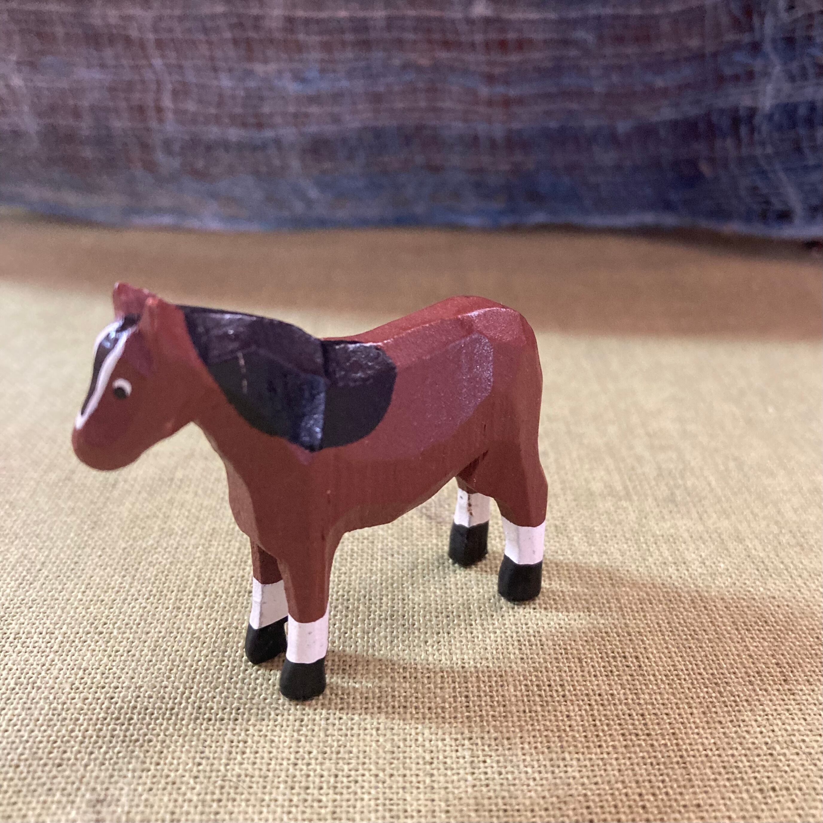 小さな馬ですが、木製の軽さと躍動感が魅力。